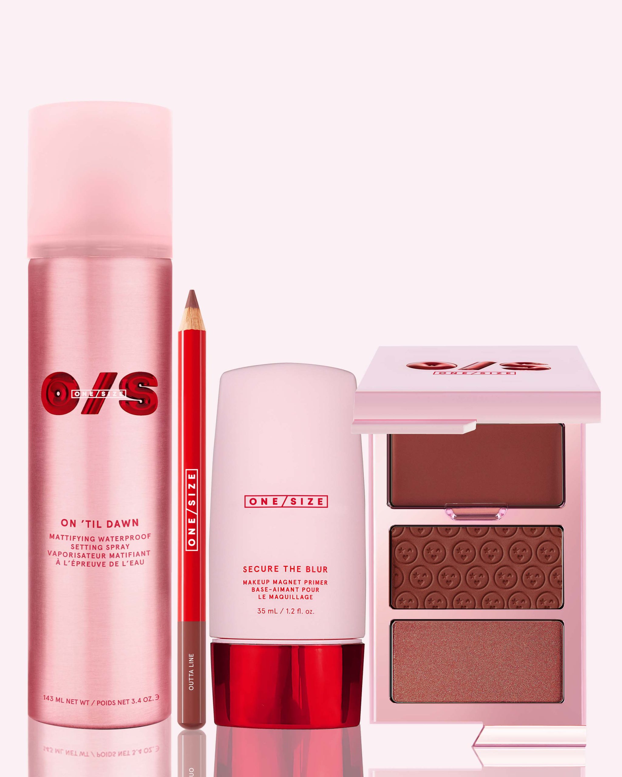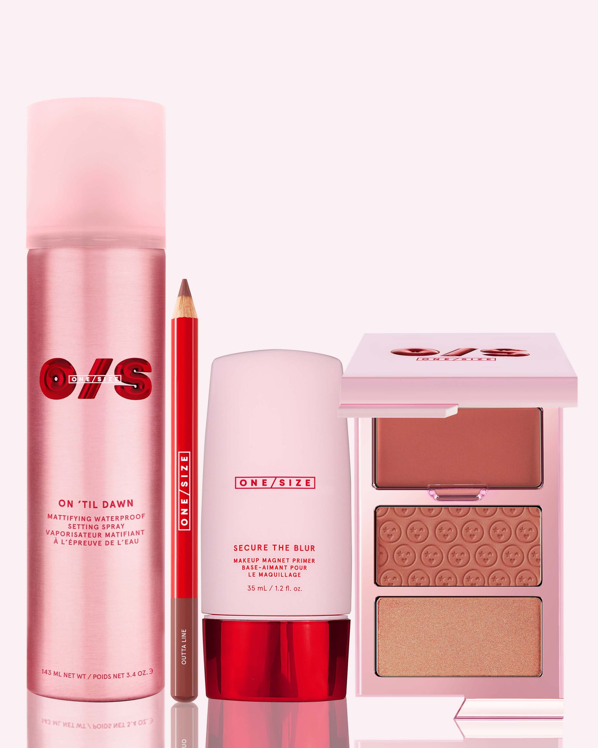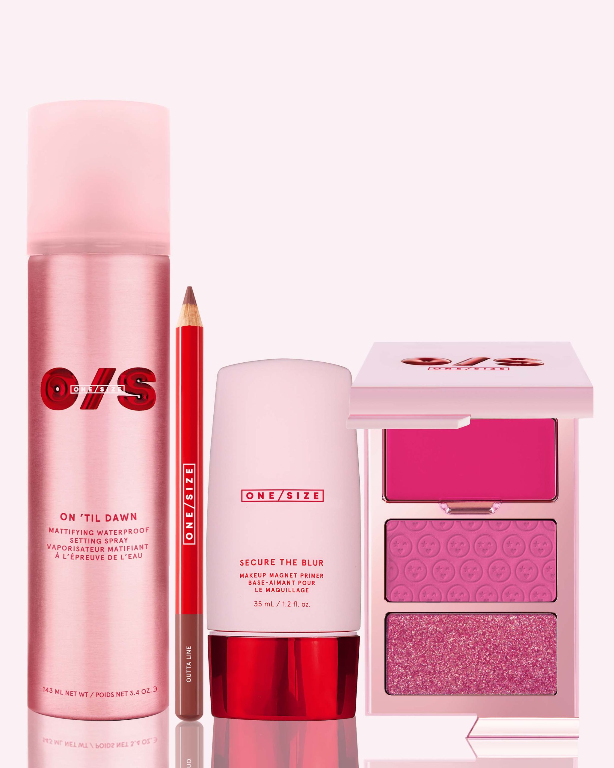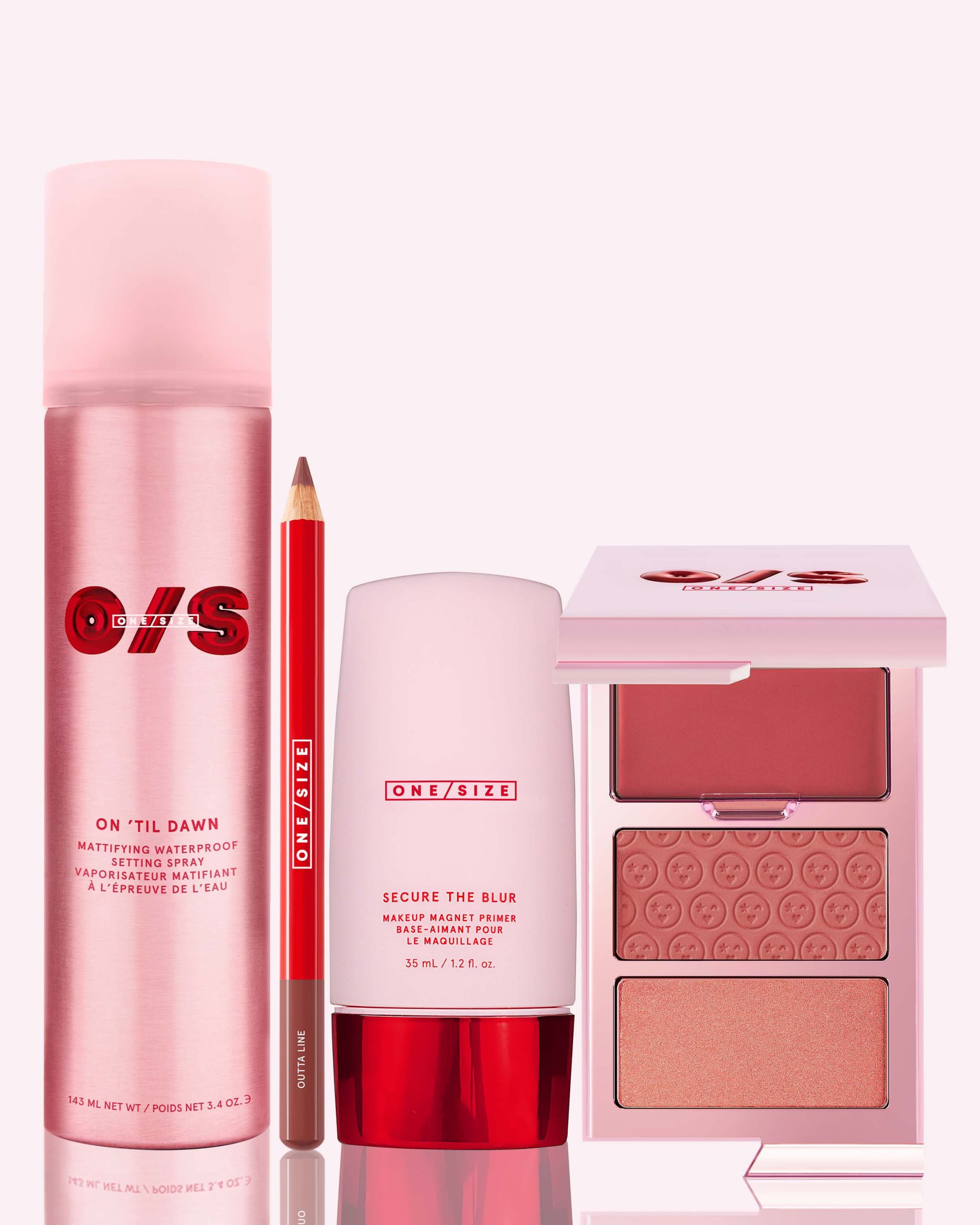 Our 16-hour setting spray bundled with an award-winning blush trio. ultra-blurring primer. and waterproof lip liner.