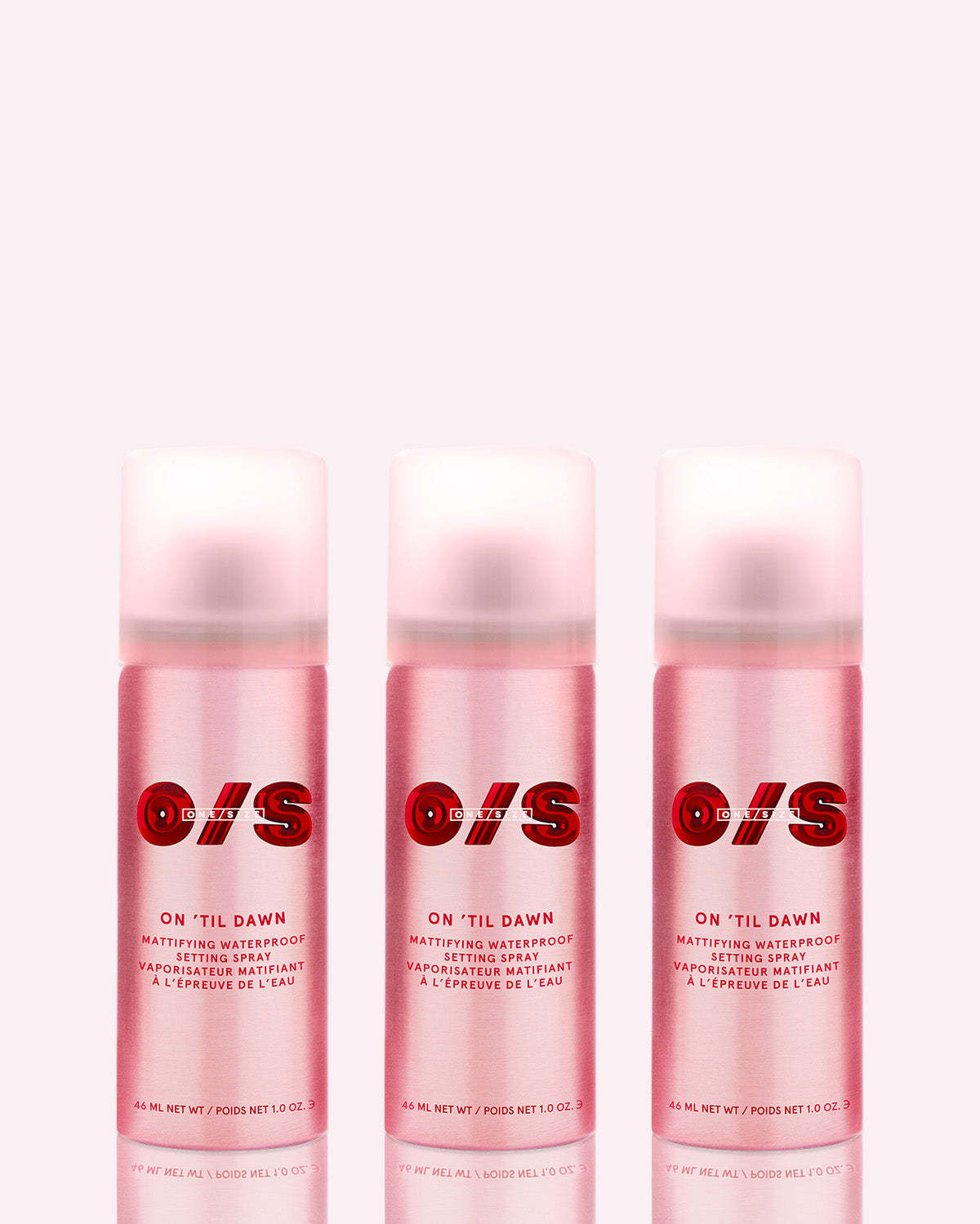 A trio of travel-sized On ‘Til Dawn Mattifying Waterproof Setting Sprays for next-level glam insurance on the go. Weightless. aerosol mist locks in makeup for up to 16 hours with a blurred. matte finish.