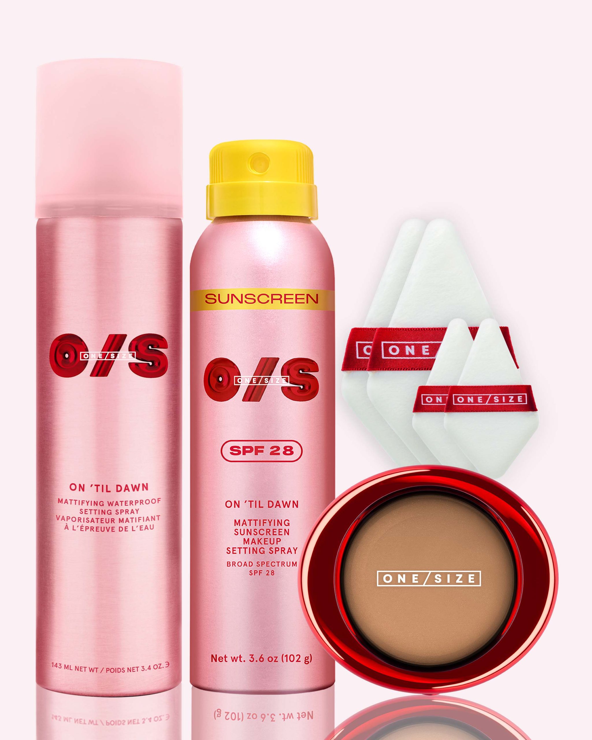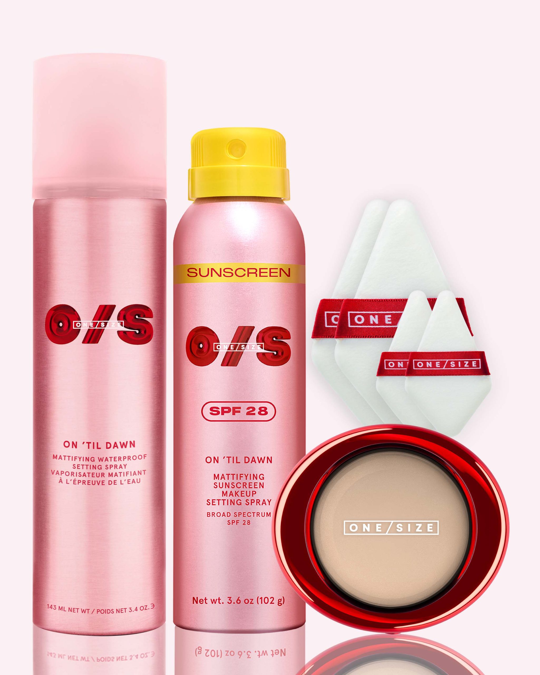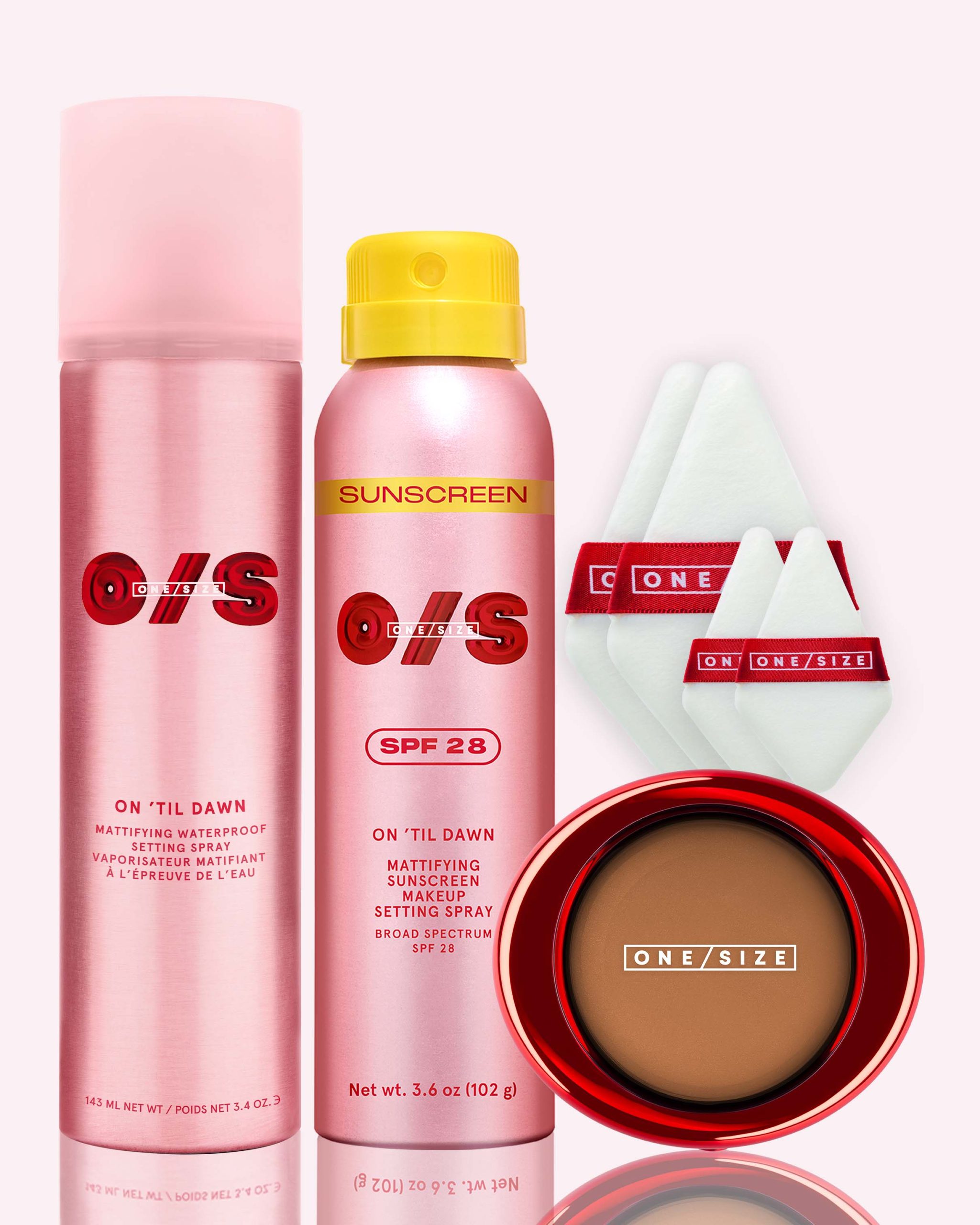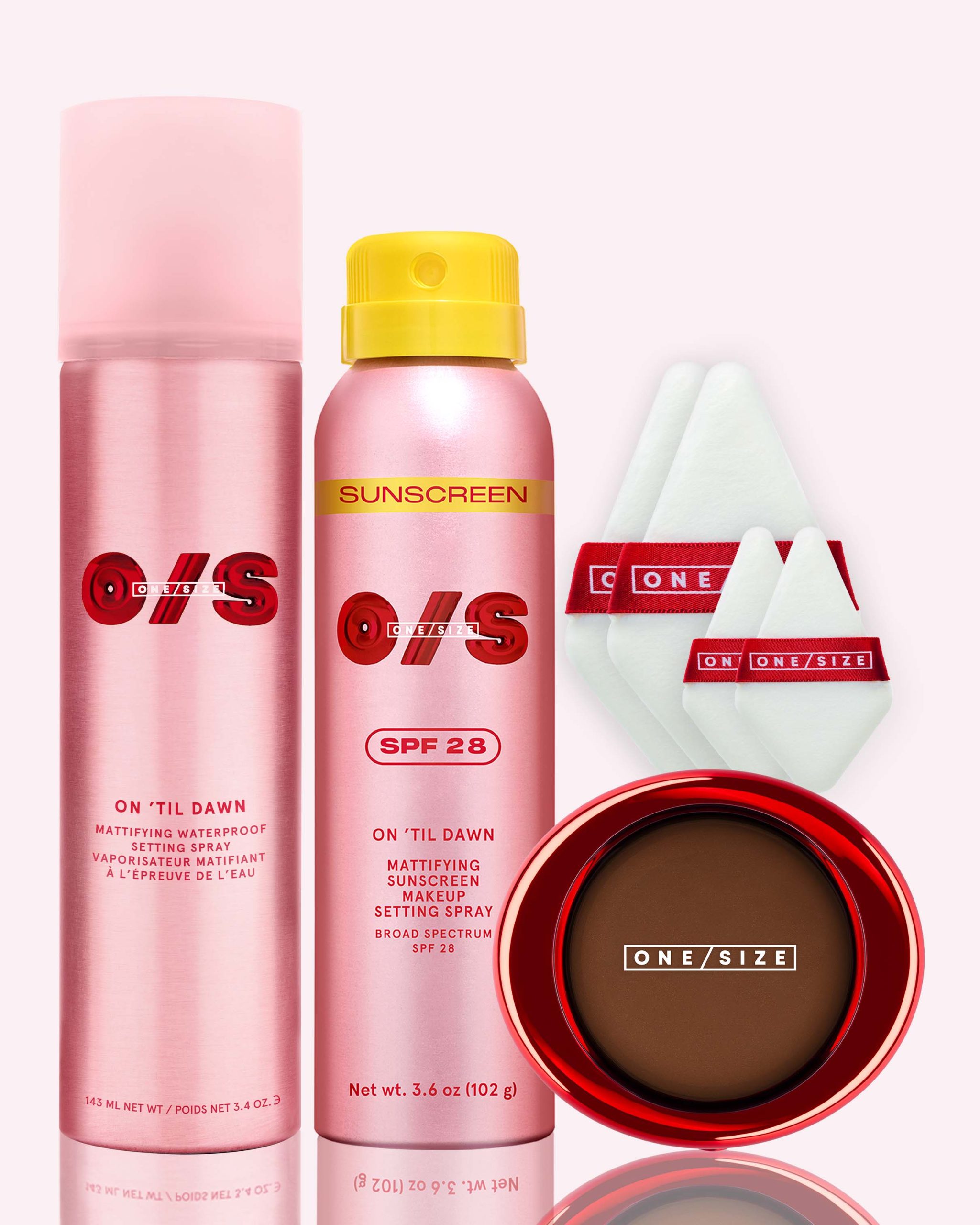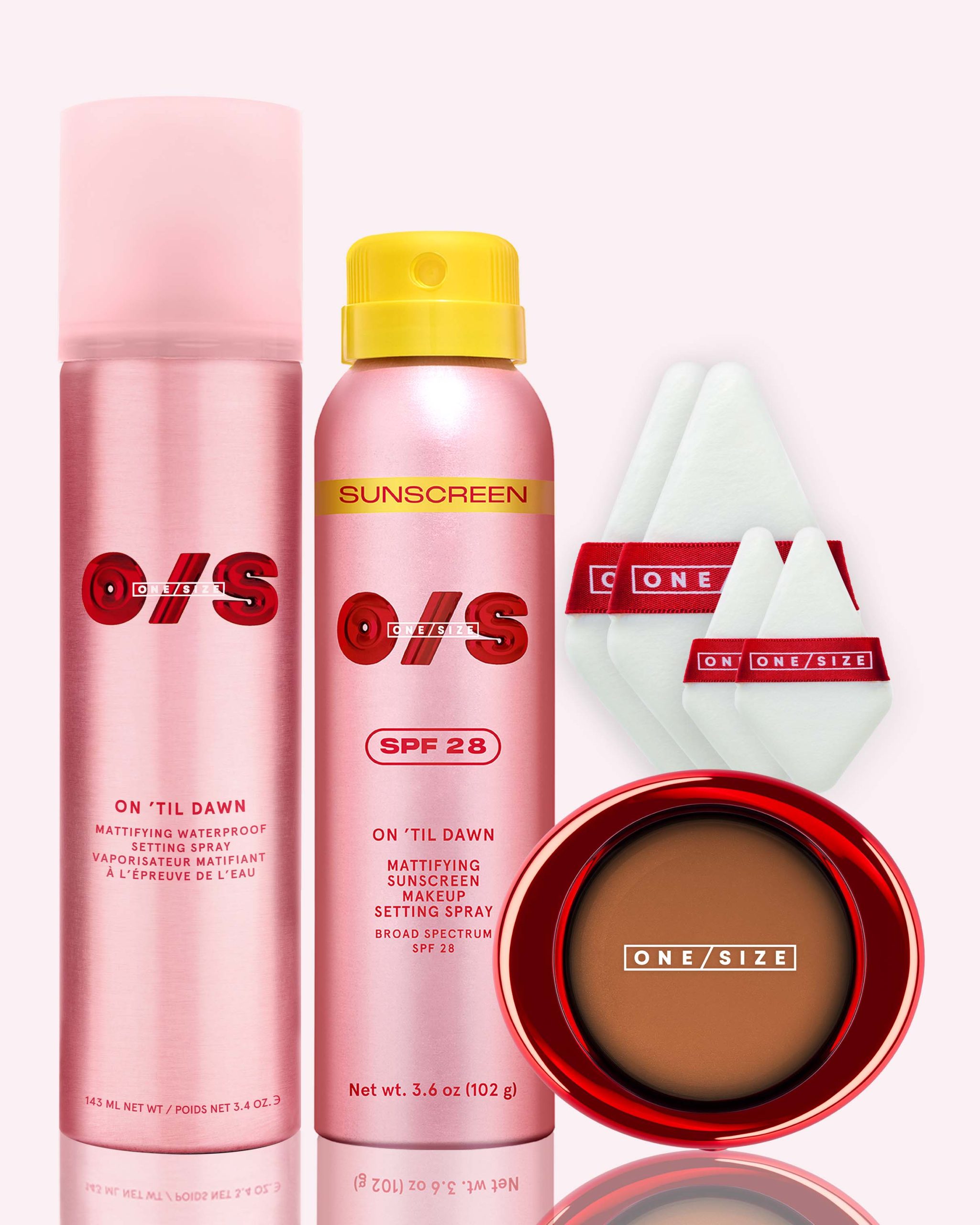 Two full-sized setting sprays. including On ‘Til Dawn with SPF. paired with our IRL filter finishing powder and a puff.